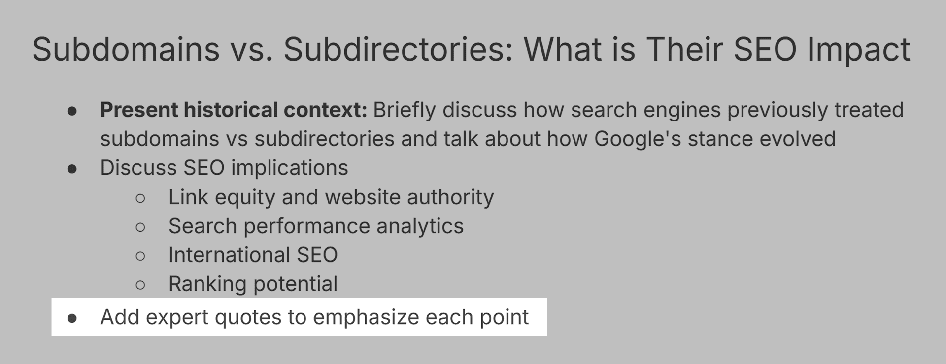 - Expand on throwaway insights: Take loosely discussed ideas and cover them in detail with additional context, data, and actionable takeaways