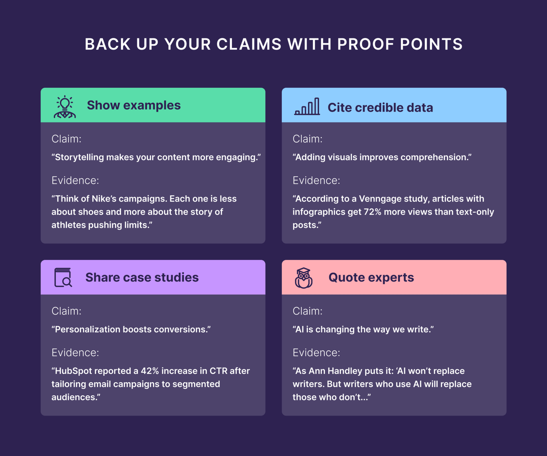 Here’s how different types of evidence can strengthen your content: