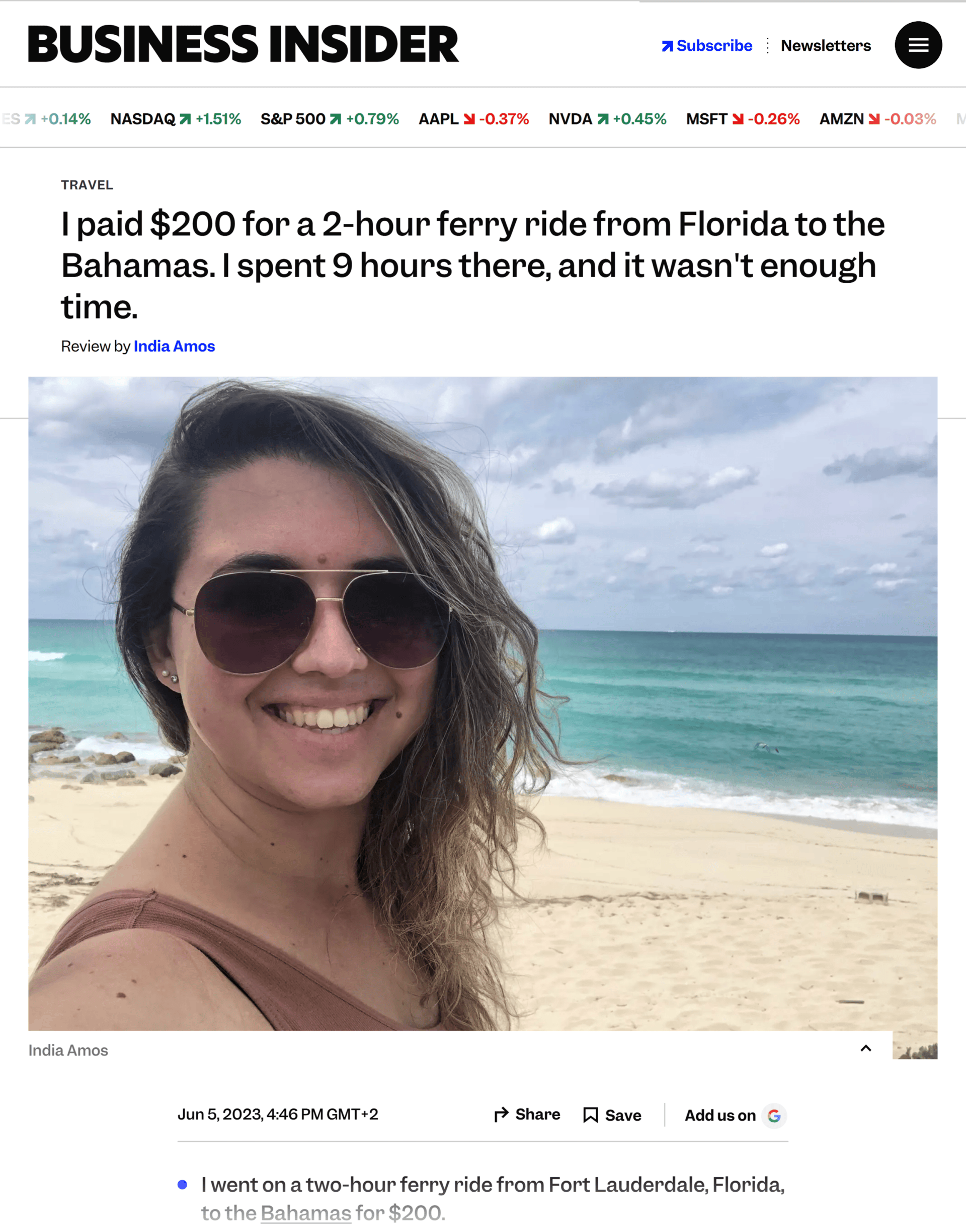 Her Business Insider piece about a ferry ride is grounded in real experience, making the content trustworthy and relatable.