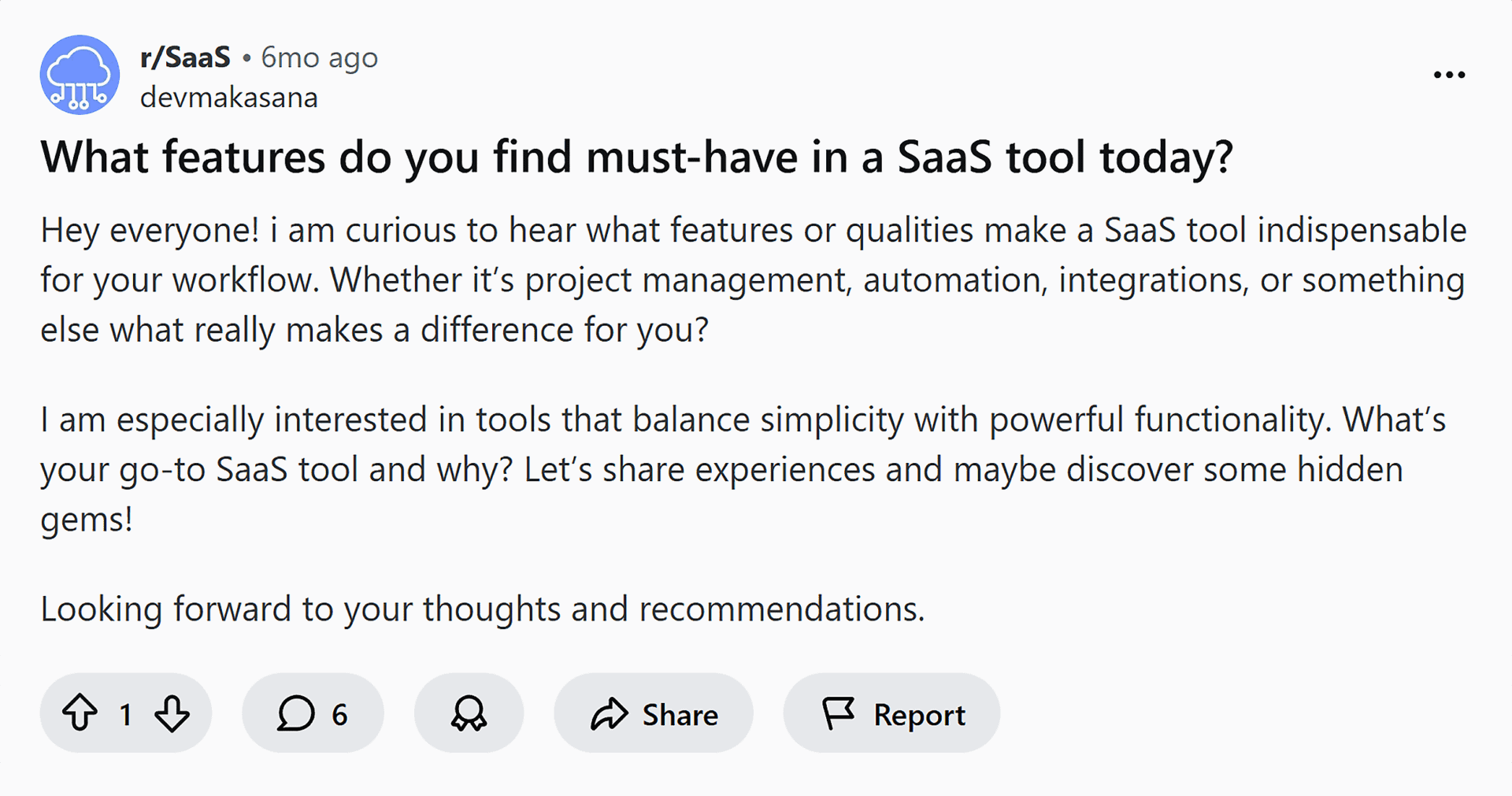 Go where real SaaS buyers are sharing feedback — places like G2 reviews and user-generated forums like Reddit.