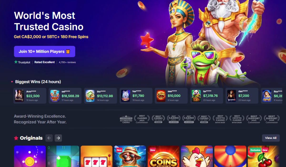 • Welcome Bonus: Up to CA$2,000 or 5 BTC + 180 free spins across multiple deposits